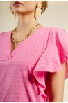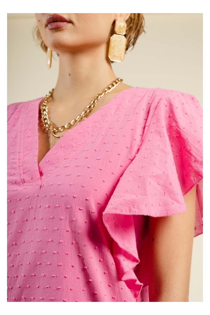 Découvrez cette ravissante robe à manches volantées, une création MULTIPLES qui allie élégance et confort. Le col V flatteur et les manches papillon apportent une touche de féminité sophistiquée à cette pièce.