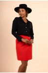 Cette jupe est un choix polyvalent qui apporte une touche de style à toute tenue. Sa coupe courte met en valeur vos jambes, tandis que le rabat ajoute une touche de sophistication. Les boutons cousus sur le côté offre non seulement une fermeture sécurisée, mais ajoute également un détail élégant à cette jupe. Pour toutes occasions, cette jupe permettra de vous créer un style audacieux et élégant que vous pourrez accorder à l’un de nos tops et vestes.