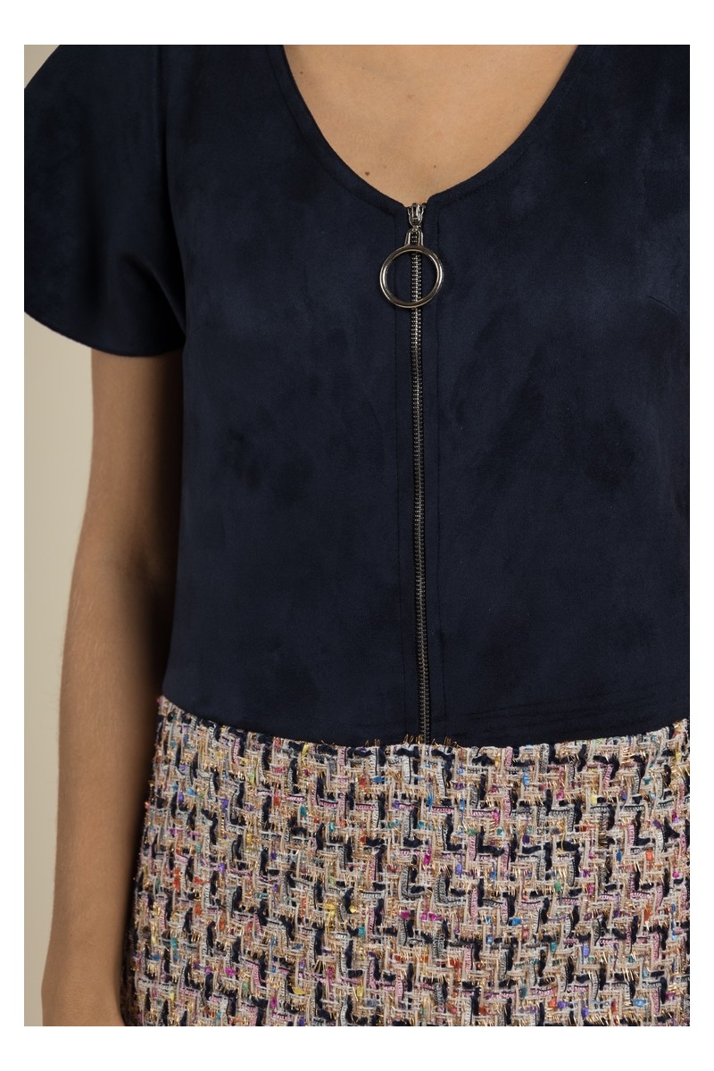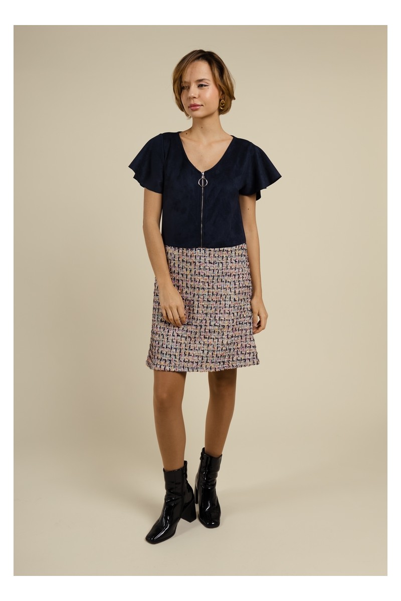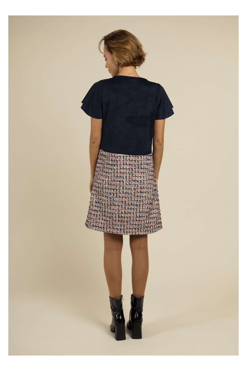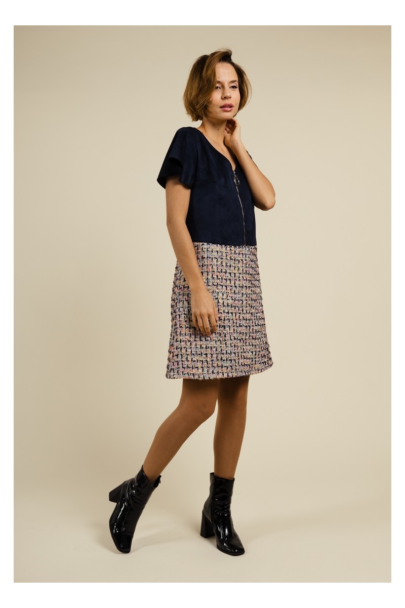 Robe droite en suédine et tweed