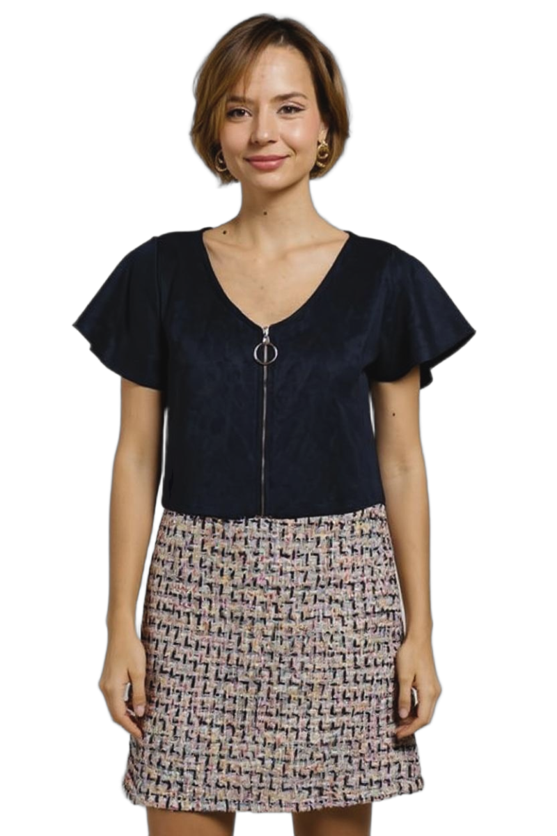 Cette robe bleue mêle l’élégance d’un bleu pur et la sophistication du tweed. Son haut en velours, doux et légèrement extensible, est doté d’un col V zippé qui apporte une touche de chic et de raffinement à votre silhouette. La jupe vient contraster l’ensemble avec un tweed coloré. Elle est doublée pour une meilleur tenue et ajoute une touche d’originalité à votre look. Ainsi, la robe s’adapte à toutes les occasions et toutes les personnalités.