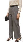 Pantalon large et fluide à taille haute avec passants pour la ceinture. Dispose de plis sur le devant pour un tombé élégant, d'une fermeture zippée transparent et de deux poches latérales à l'avant.