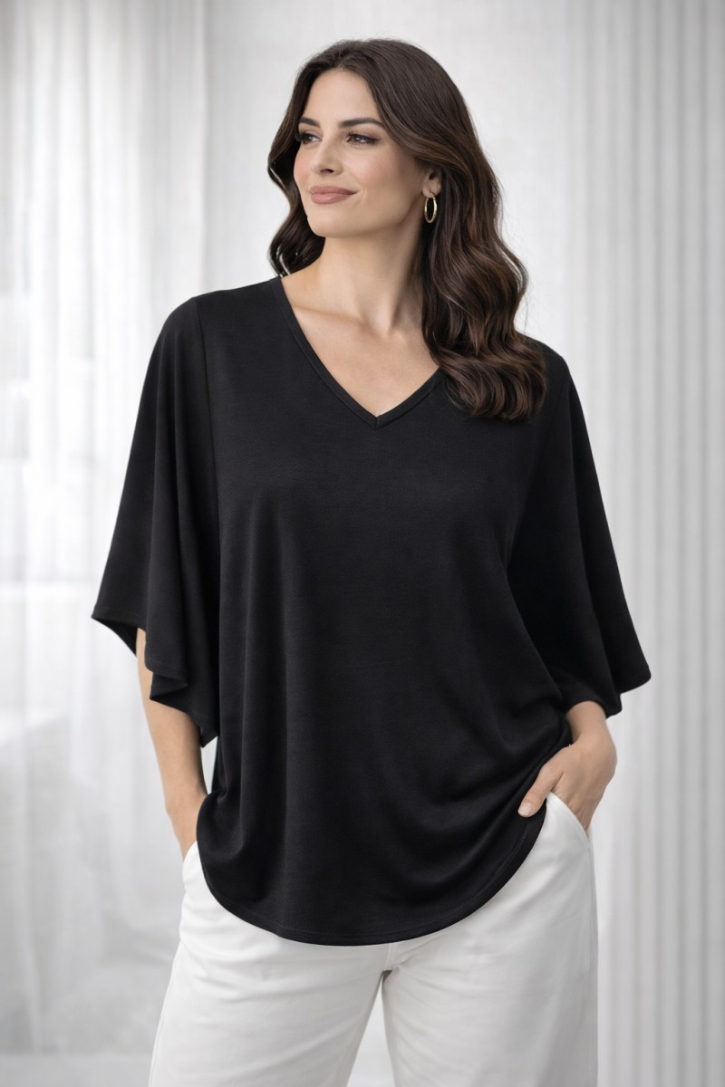 Ce top fluide à manches chauve-souris est une pièce essentielle du vestiaire féminin, pensée pour allier élégance, confort et modernité.
