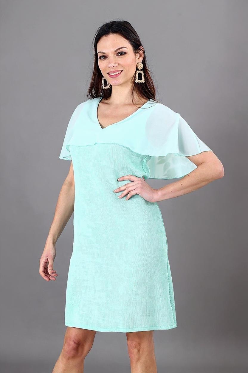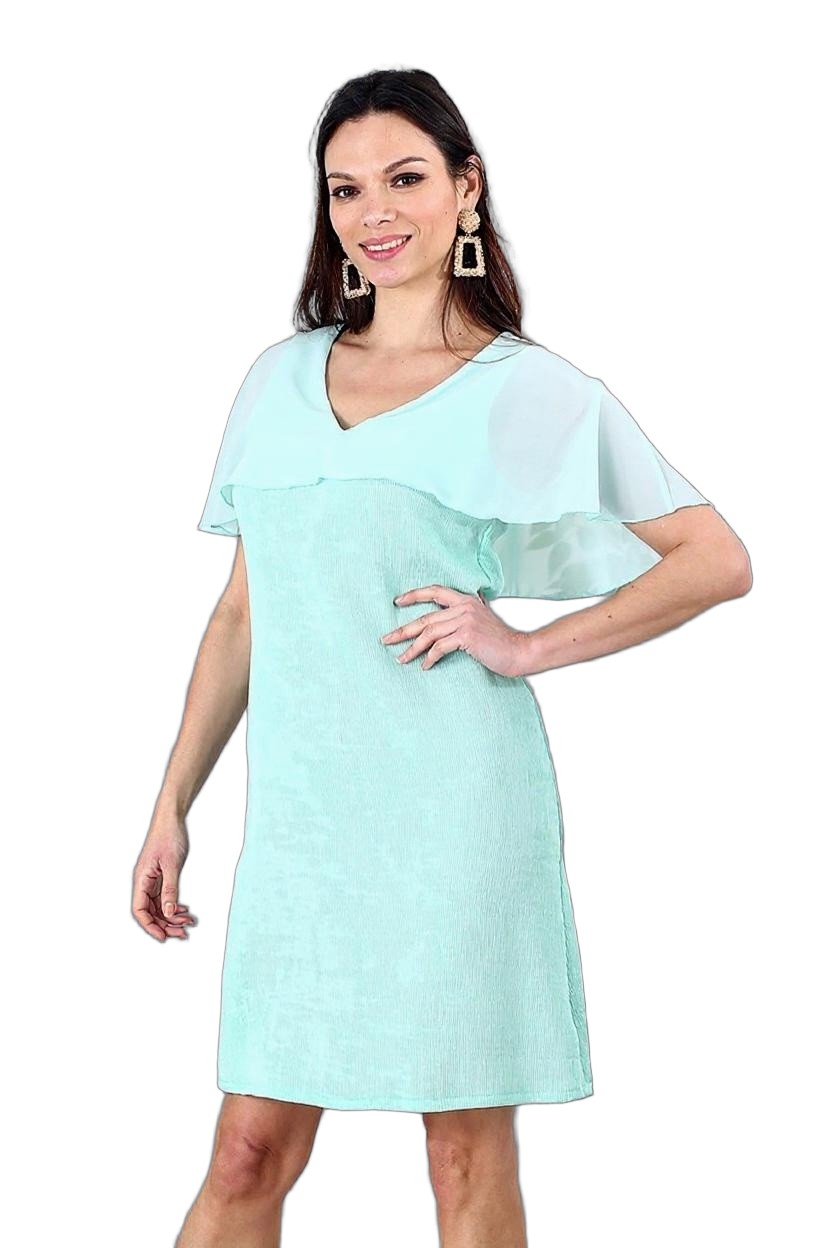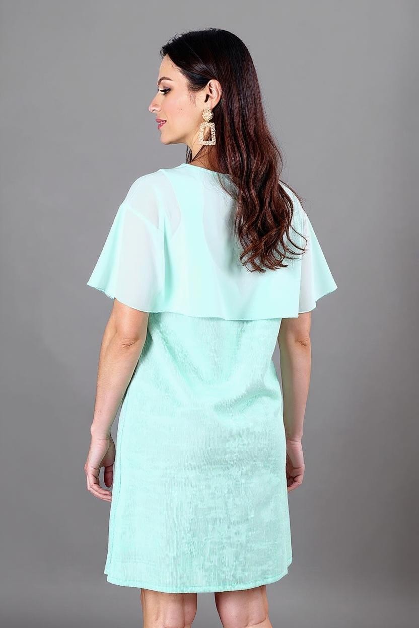 Cette robe se distingue par sa simplicité chic, idéale aussi bien pour un usage quotidien que pour des occasions spéciales. Sa longueur au-dessus du genou met en valeur les jambes, tandis que sa teinte lumineuse rehausse l’éclat du teint.